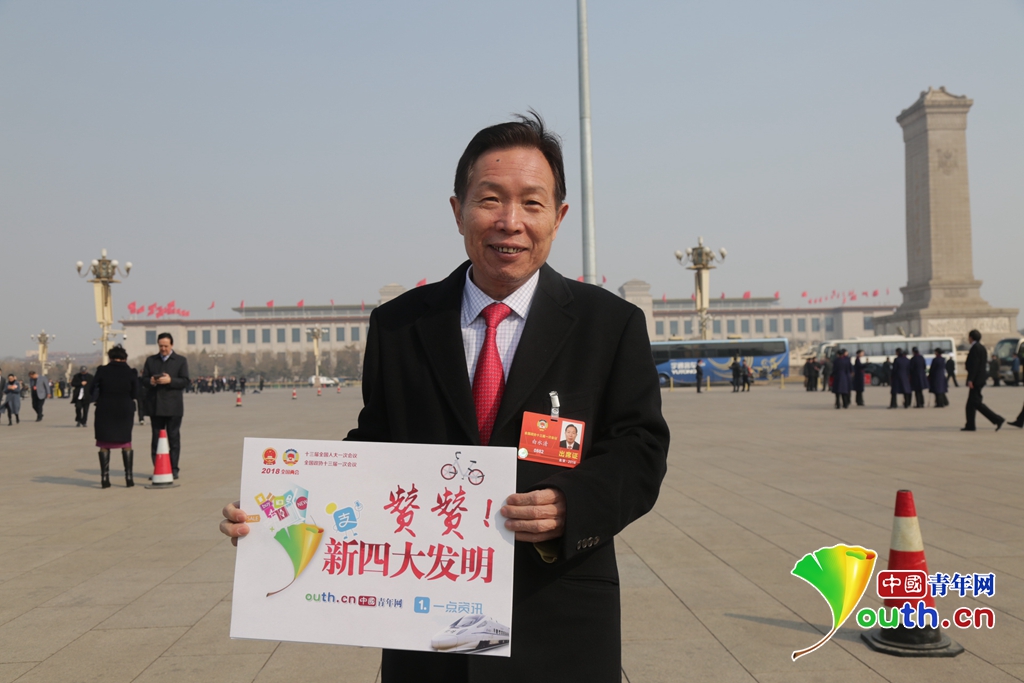 全国政协委员白水清为“新四大发明”点赞。中国青年网记者 宋继祥 摄
