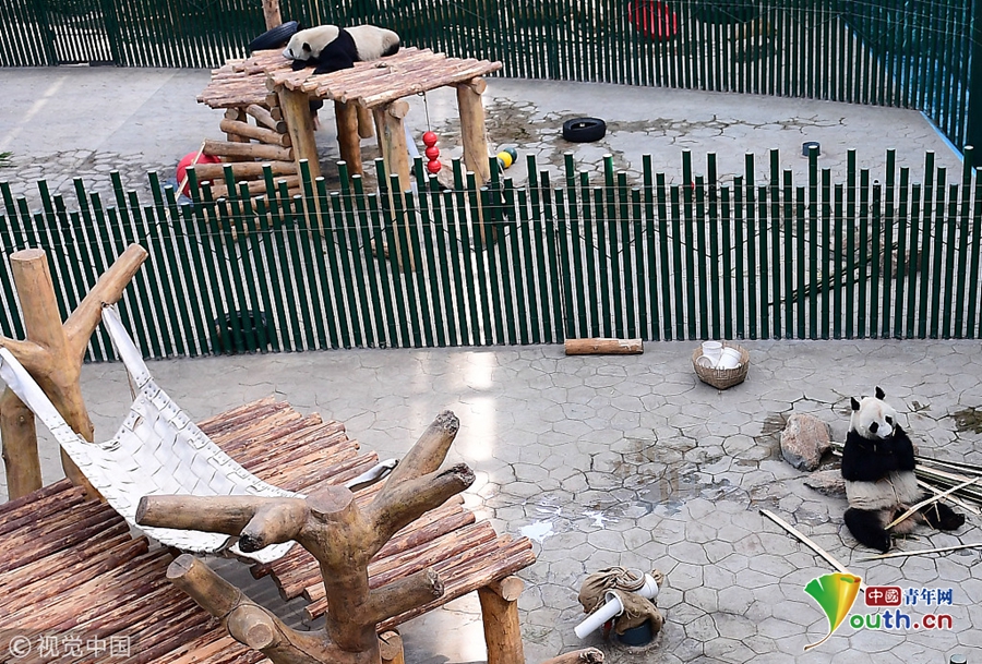 四只大熊猫“滚滚”搬家 新玩具上手快