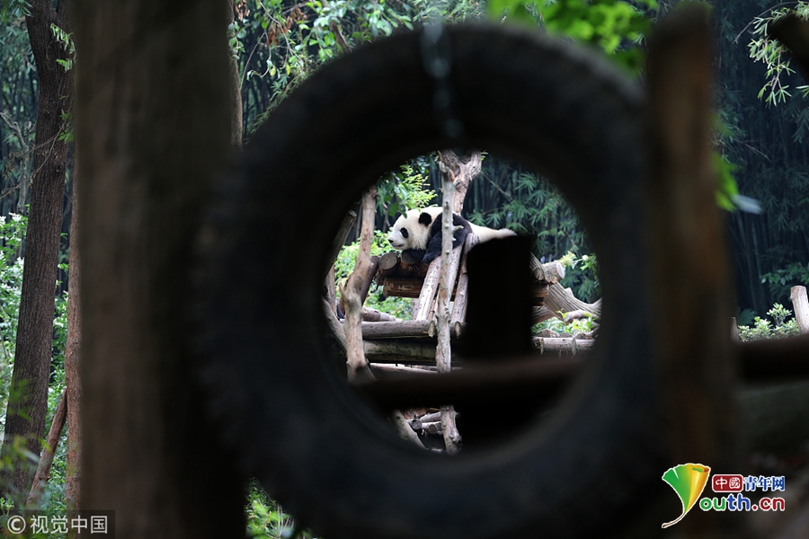 萌力十足 成都大熊猫繁育研究基地迎来客流高峰