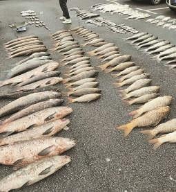长沙市公安局望城分局蔡家洲派出所副所长张仪介绍说:“我们清点渔获物时,把派出所前坪都铺满了,最大的鱼体长一米多,重达30多斤。”经鉴定,现场查获的渔获物共计355尾,鱼类18种,其中列入《国家重点保护经济水生动植物资源名录》的鱼类13种,列入《湖南省地方重点保护野生动物名录》的鱼类1种。