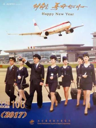据央视网12月31日报道,朝鲜近日推出2017年挂历,高丽航空的5名空姐和2名驾驶员变身模特登上封面。多年以来朝鲜挂历上的图案,主要取材于风格保守的风景名胜文物古迹,航空公司乘务员出现在挂历上尚属首次。