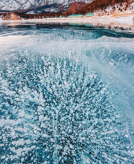 俄罗斯西伯利亚地区的贝加尔湖湖面结冰并形成天然裂缝,冰封的湖面美如翡翠,纯净无暇,造就了一番冰蓝相接的魔幻奇景,让人不禁感叹大自然的鬼斧神工和无限魅力。