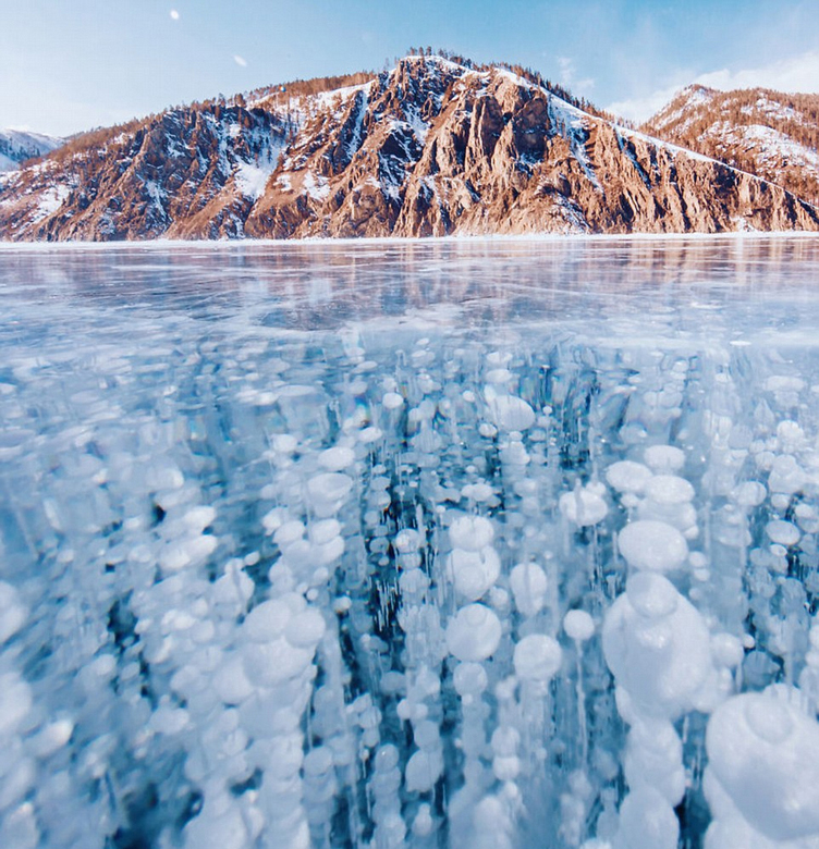 俄罗斯西伯利亚地区的贝加尔湖湖面结冰并形成天然裂缝,冰封的湖面美如翡翠,纯净无暇,造就了一番冰蓝相接的魔幻奇景,让人不禁感叹大自然的鬼斧神工和无限魅力。