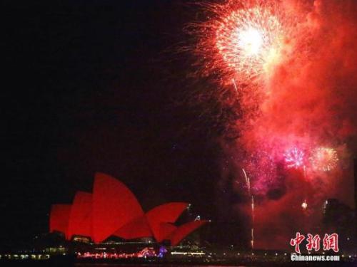 中新网1月28日电 综合报道,当地时间1月27日晚,悉尼10余位各界政要、侨领同时摁下按纽,悉尼歌剧院的白色外观刹那间变成耀眼的中国红,随后焰火腾空而起,引来现场数千名民众的一片喝彩。