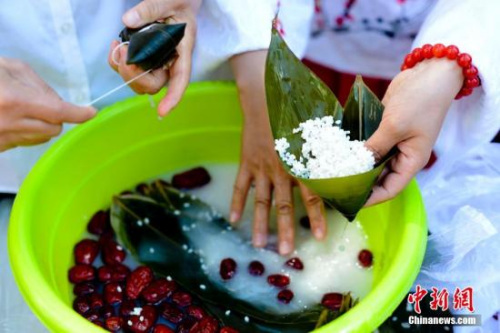 端午节应节食品粽子也是越南过年的传统美食,但是越南过年包的肉粽形状跟三角形肉粽不一样。
