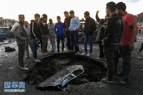 2月16日,在伊拉克巴格达市西南部的一处汽车销售市场,人们聚集在汽车炸弹袭击地点(手机拍摄)。伊拉克警方16日说,首都巴格达当天下午发生汽车炸弹爆炸袭击,造成至少45人死亡、56人受伤。 新华社/法新