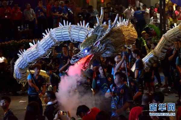 2月17日,在马来西亚柔佛州首府新山,人们在“柔佛古庙众神出游”活动上进行舞龙表演。马来西亚柔佛州首府新山17日举办“柔佛古庙众神出游”活动。这项活动是新山当地华人社会每年一度的盛事。 新华社发(张纹综 摄)