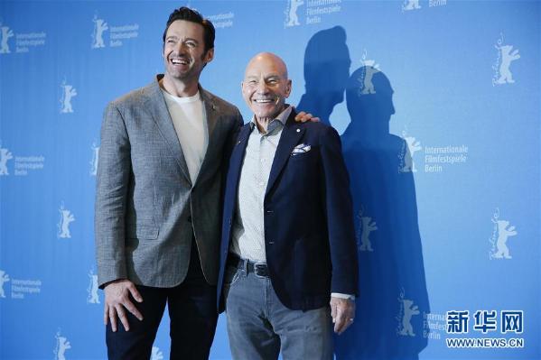 2月17日,在德国首都柏林,电影《金刚狼3:殊死一战》的演员休·杰克曼(左)和帕特里克·斯图尔特出席拍照式。当日,电影《金刚狼3:殊死一战》亮相第67届柏林国际电影节。 新华社/欧新