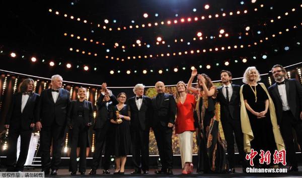 北京时间2月19日凌晨,第67届柏林电影节主竞赛单元揭晓了各奖项的归属者。以保罗·范霍文为首的评委会将最佳影片金熊奖颁给了风格另类的小清新爱情片《肉与灵》,影帝影后分别授予奥地利男演员乔治·弗里德里希、韩国女星金敏喜,北欧大师考里斯马基获最佳导演奖,全部八个奖项被分配给了八部不同影片,没有出现像《白日焰火》那样又擒金熊又拿影帝的盛况。唯一的中国入围作品、动画片《好极了》和张震担任男一号的日本参赛片《龙先生》遗憾未能获奖。图为影片《肉与灵》主创人员上台领奖。
