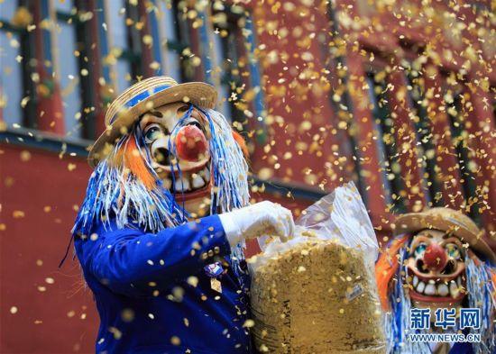 3月6日,在瑞士北部城市巴塞尔,人们参加巴塞尔狂欢节盛装游行时抛撒彩色纸屑。一年一度的巴塞尔狂欢节于当日正式拉开帷幕,并将持续三天的时间。继当日凌晨四点举行的清晨游行后,下午举行的盛装游行吸引了众多参与者与游客。徐金泉 摄