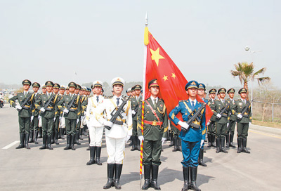 中国人民解放军三军仪仗队政委张兆宏大校介绍说,为参加本次阅兵活动,三军仪仗队专门成立了由90人组成、72人正式受阅的方队。为更好地促进中巴两国军事交流合作,更好地展现中国人民解放军“和平之师、威武之师、文明之师”的良好形象,方队进行了认真准备、严格训练,还对队员进行了巴基斯坦风土人情等方面的培训。