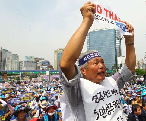 资料图:韩国民众举行集会反对部署“萨德”系统 。