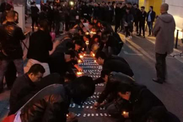 27日20时,当地华人自发前往事发地警察局门外集合,在地上摆放蜡烛,为死去的同胞祈福。
