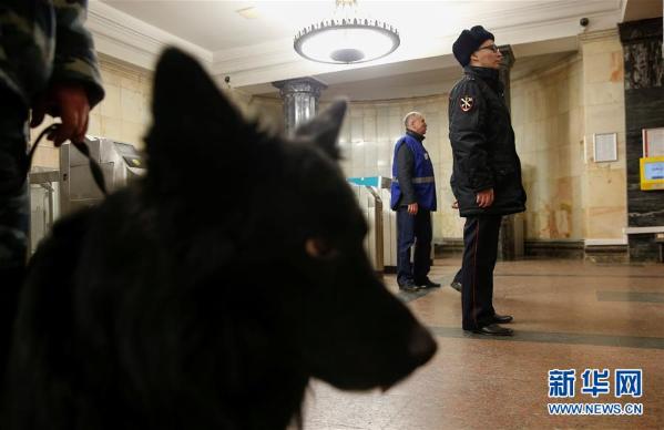 4月5日,警察和安全人员在俄罗斯莫斯科的一个地铁站内执勤。
