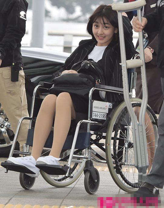 人民网4月7日讯 4月6日下午,韩国女子组合TWICE现身仁川机场,前往泰国曼谷举办演唱会。当日,朴志效因受伤而乘轮椅现身,脸上的笑容依旧灿烂。名井南身穿黑色皮衣夹克配牛仔裤,帅气的感觉迎面扑来。周子瑜口罩和鸭舌帽遮面,低调现身。