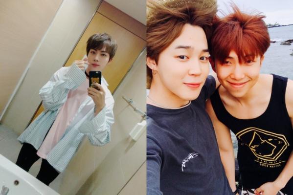 人民网4月10日讯 防弹少年团成员金硕珍(JIN)、朴智旻(JIMIN)和金南俊(Rap Monster)在社交媒体上上传自拍照并向粉丝们问好。