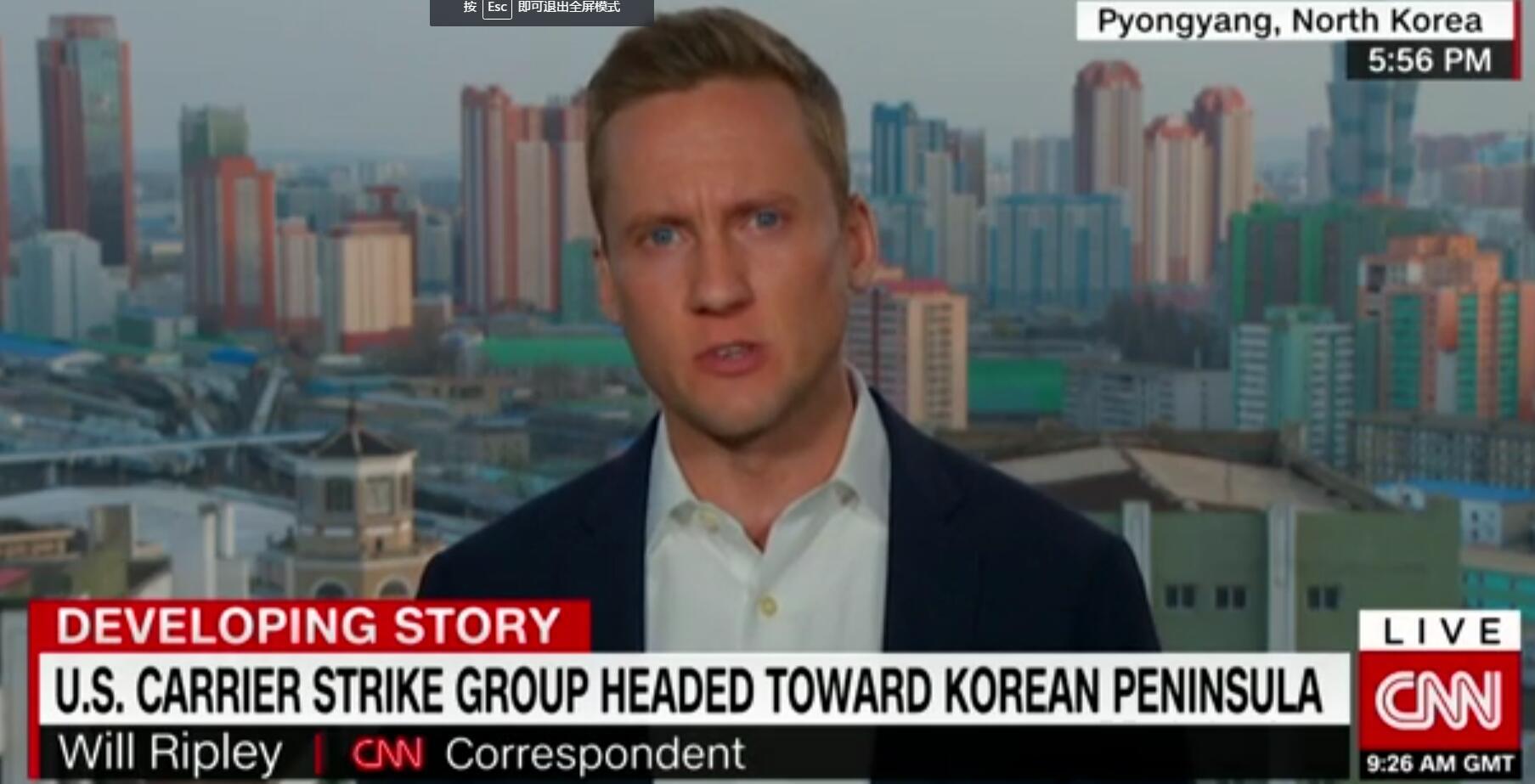 4月9日CNN一本正经的报道,美国航母打击大队北上朝鲜半岛