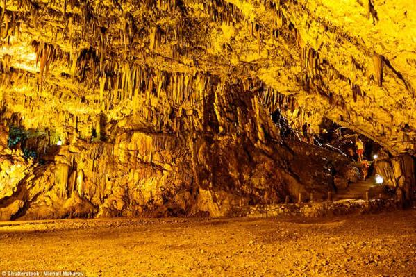 洞穴约300英尺深,一次可容纳多达500名游客,是希腊最大的洞穴。岩洞顶部悬挂着奇特钟乳石,形状各异,吸引着众多的游客。
