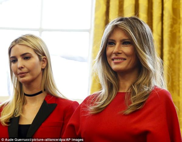 2017年2月, 梅拉尼娅(右)与伊万卡(左)在白宫总统办公室。