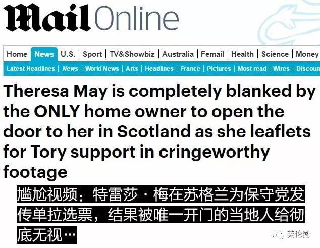 海外网5月3日电 话说英媒也是real爱看梅姨的笑话,这两天都被她在苏格兰阿伯丁郡(Aberdeenshire)连吃6个闭门羹的事儿给刷屏了: