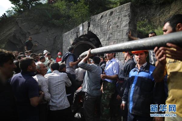 5月3日,在伊朗古莱斯坦省,矿工和救援人员聚集在煤矿爆炸事故现场。据伊朗媒体3日报道,伊朗古莱斯坦省一处煤矿当天发生的爆炸事故已造成至少21名矿工死亡。 新华社/法新