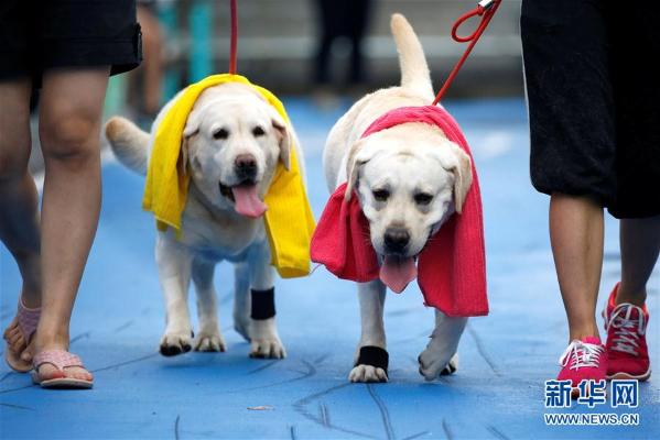 5月7日,在泰国首都曼谷,狗的主人们与爱犬一起跑“宠物狗迷你马拉松”。 新华社/路透