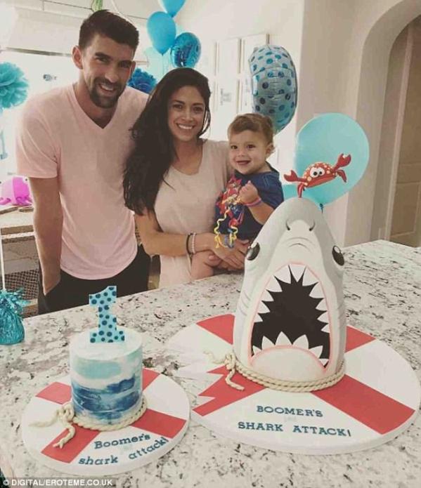 迈克尔·菲尔普斯上周五为自己的儿子布默·菲尔普斯庆祝一岁生日,而且将生日的主题就定为“小鲨鱼来袭”。