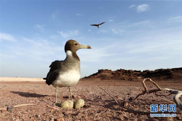 5月12日,在阿联酋布奈尔爵士岛上,一只黑海鸥守护着它的蛋。新华社/法新