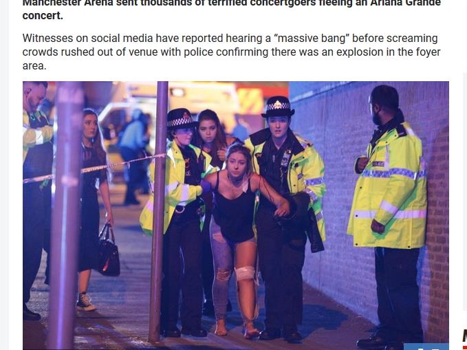 25岁的特德Sophie Tedd)则说:“我们坐在场内一边,突然旁边有很大声的爆炸声,所有人在逃跑和尖叫,现场有烧焦气味。”现场还有人说:“爱莉安娜?格兰德已入幕后,灯光已亮,突然出现爆炸声和浓烟,我看到有5人浴血倒地。”