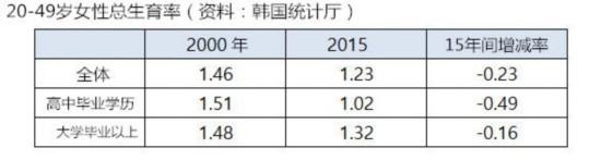 《韩民族日报》称,在进入低出生率社会时生育和育儿机会成本很大,高学历和高收入女性的生育率变低是普遍现象。但是韩国在进入低生育社会以后,以高中毕业女性为中心的生育率也显现出急剧下降趋势。首尔大学教授曹永台(音,福祉人口学)分析表示,“比起因生产和育儿而失去机会成本的问题,生产和育儿过程中应支付的费用增至低收入阶层再也无法承受的程度,收入逐渐减少,生育余力也逐渐消失”。