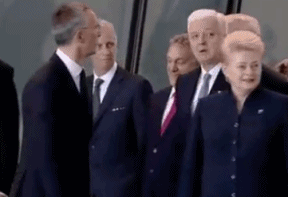 特朗普用手拨开挡在前面的黑山共和国总理,走到前面与其他北约领导人交谈。BBC调侃称“特朗普用行动证明谁才是北约的老大”。