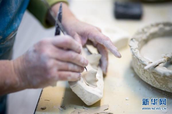 5月21日,在俄罗斯莫斯科州格热利瓷器厂,一名工匠在车间里工作。 新华社/卫星社