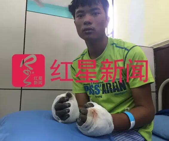 ▲5月28日,红星新闻记者在加德满都一家高级医院见到了被救的桑吉,他的十个手指头可能难以保留