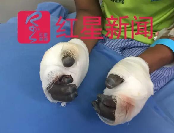 在医院,这名年轻的夏尔巴人双手缠满纱布,他乌黑的十指摸上去像冰一样冷。医生说,20天后之后,才能确定他的十指是否能够存活。