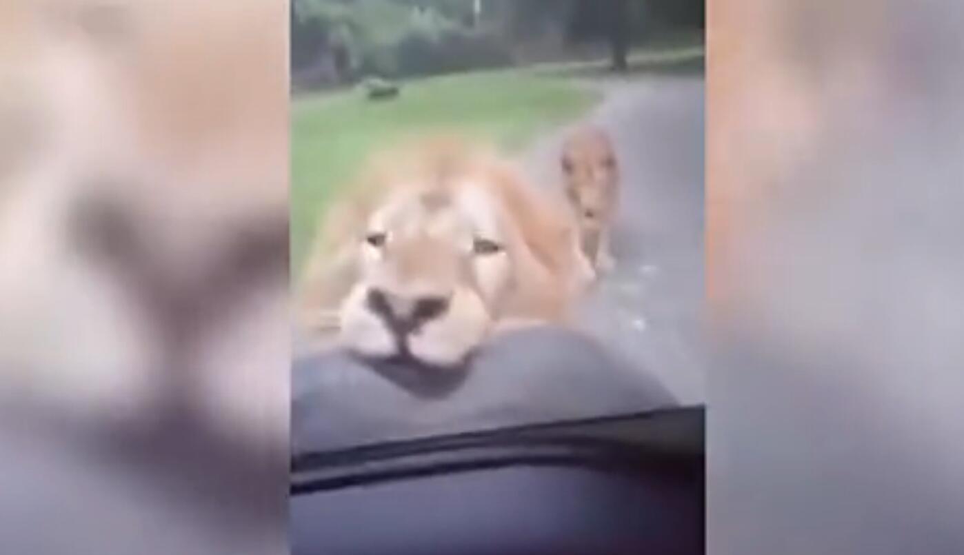 据英国《每日邮报》6月21日报道,在危地马拉的埃斯昆特拉省查宾自然保护区(Chapin nature reserve)的一个野生动物园里,一只饥饿的狮子咬住游客的汽车备用轮胎,将汽车紧紧拖住不能移动,汽车上的游客被吓得魂飞魄散。