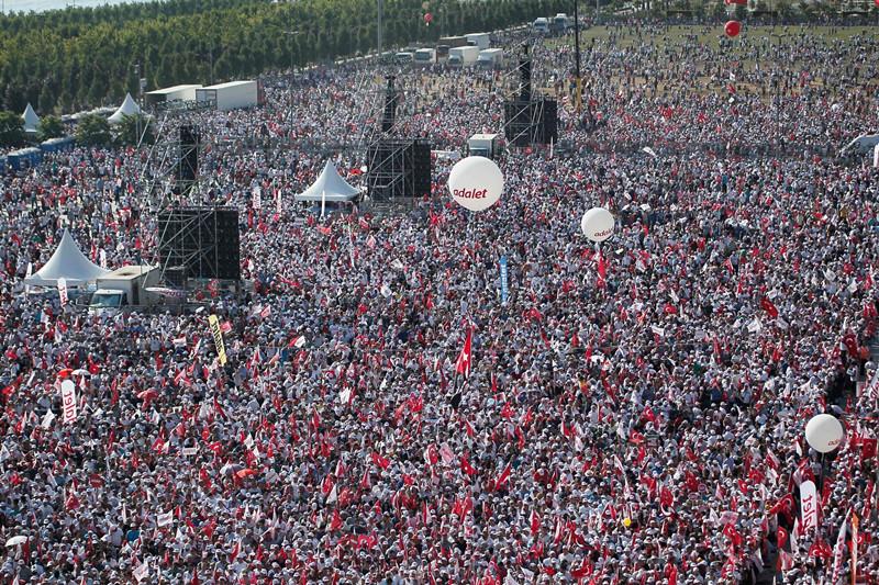 当地时间7月9日,土耳其十多万抗议者汇集到伊斯坦布尔,抗议总统雷杰普·塔伊普·埃尔多安(Recep Tayyip Erdogan)自去年土耳其发生未遂政变后的政治镇压。相关报道称,这是自2013年以来,土耳其爆发的规模最大的反政府游行。