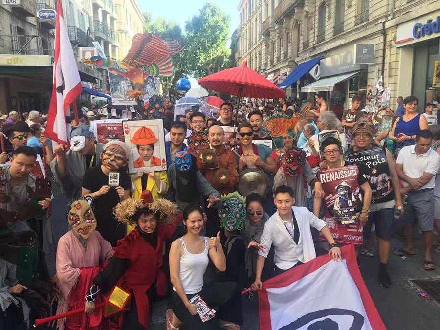 本次展演预计观众人数将达两万人次,除了在被媒体评为OFF最佳剧场之一的闪光剧院演出外,还将“入乡随俗”,按照阿维尼翁戏剧节的传统惯例,在街头巷尾进行路演,让更多来自世界各地的专业人士和观众了解中国戏剧。6日举办的盛装大游行把戏剧节的热度推向沸腾,中国的演出团队也装扮起来,全体出动,敲锣打鼓、载歌载舞地走上街头,加入游行队伍,为自己的剧目宣传造势。9日举办的展演媒体见面会上,已经第五次参加阿维尼翁戏剧节的三拓旗剧社负责人赵淼在接受法国媒体采访时表示:“阿维尼翁是一个国际化的舞台,我们既来展示中国戏剧、传播中国文化,让中国戏剧在这个平台上进入国际戏剧界的视野,也来学习交流。世界各国形式创新、水平高超的作品集中,优秀先锋的戏剧人汇聚,交流观摩为我们的创作打开国际视野,也开拓了国际推广渠道。”