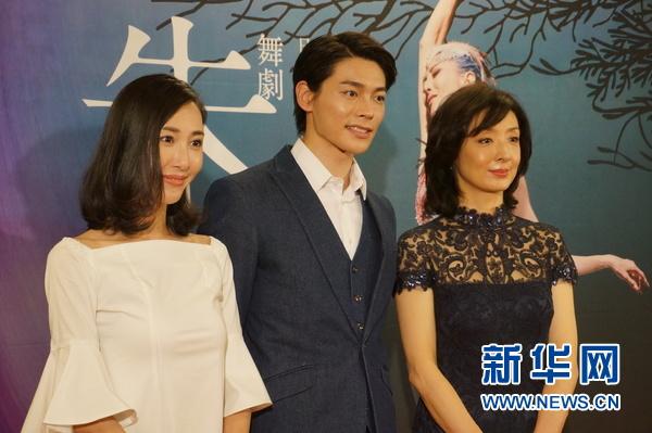 《朱鹮》主创朱洁静和王家俊及为公演助阵的日本著名芭蕾舞者草刈民代(右一)。新华网记者杨汀 摄