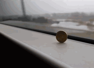 视频中,他把硬币立在时速310公里的高铁车窗窗沿,硬币稳稳站立长达9分钟不倒,甚至在即将到站减速时依旧站的相当稳。直到列车将要进站需要变换轨道时,硬币才倒下: