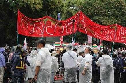 这些右翼分子在此集结,是为了向每年8月15日都在靖国神社附近高喊“反对天皇制”等口号的“反天皇制运动联合会(反天联)”提出抗议。在追悼战争死难者的终战纪念日当天,靖国神社附近抗议声与怒骂声吵闹不休。