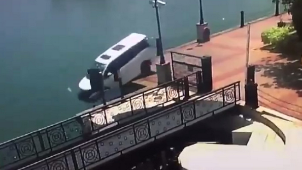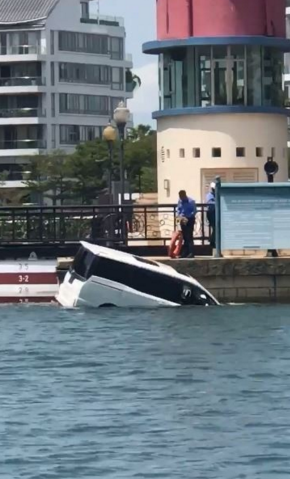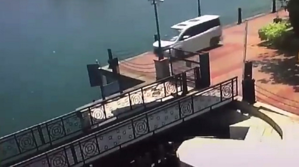 所幸妻子逃过一劫,现场已经有多名保全人员在后头追车试图制止,但是这名男子继续开车,撞妻未果后也没有减速,直接撞破栅栏,连人带车直接坠入海中。