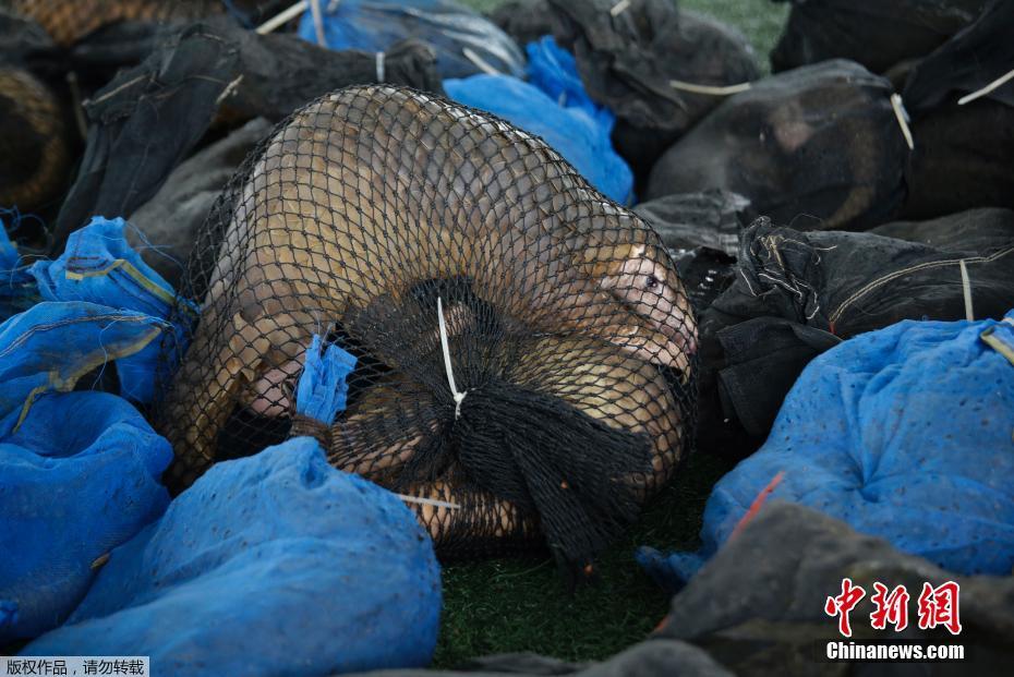 泰国海关查获一批走私活体穿山甲 数量之巨共计136只