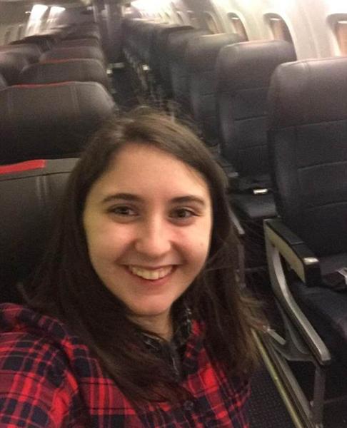 这位女士名叫贝丝(Beth),据她说,她从纽约罗切斯特出发,前往华盛顿罗纳德?里根国际机场,在长达70分钟的飞行途中,只有两名飞行员与一名空中乘务员,没有其他乘客。