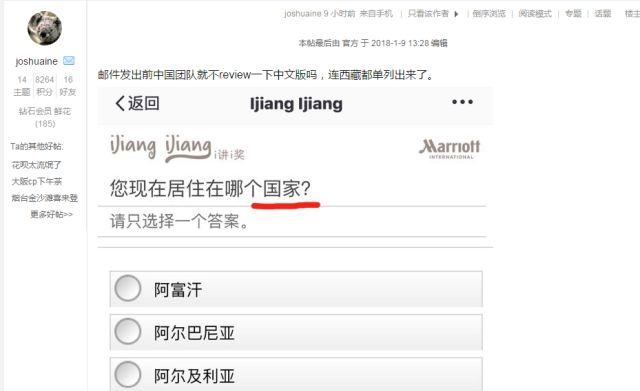 这立刻引起了不少中国会员的不满,纷纷在负责这一活动的“万豪礼赏”的论坛板块上进行了投诉。