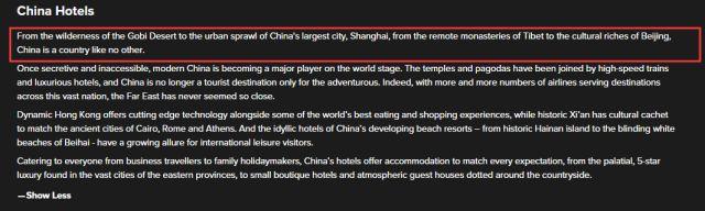 而且其英国区的网站在关于中国的介绍部分,还特别写明了西藏是中国的一部分。