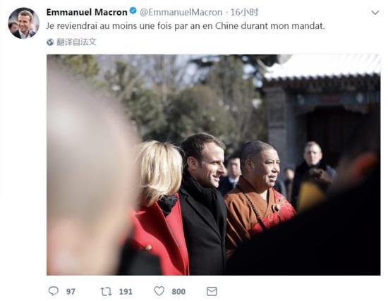 马克龙总统表示,在任期间,每年至少来一次中国。