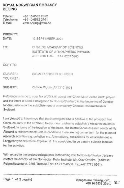 2001年9月,挪威驻中国大使馆致函邀请我赴斯瓦尔巴德群岛考察并建站