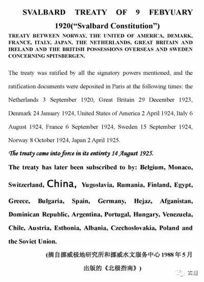 《斯瓦尔巴德条约》的原文为中国人建立北极站提供了法律根据