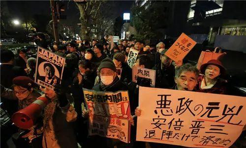 13日,上千名示威民众包围日本首相府,高喊“安倍内阁退位”。