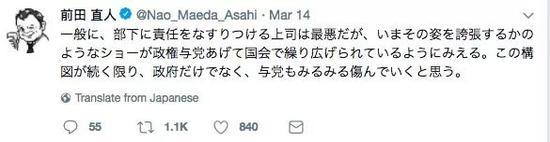 国会上提出的文件篡改问题打开了新局面。这件事原本就始于安倍总理和昭惠夫人的言行,只让财务省相关人员负责是不能完事儿的。请安倍总理按照约定辞职吧。新的局面蕴藏着诞生零核电政权的机会。